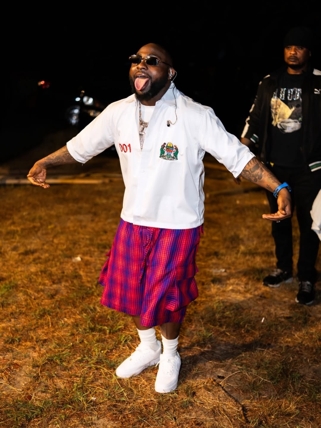 The standout element of the outfit was the custom shorts, inspired by the traditional dressing aesthetics of the Maasai people — one of East Africa’s most recognized semi-nomadic indigenous communities. Known for their vibrant textiles and symbolic adornment, the Maasai influence introduced cultural authenticity into the tour wardrobe.