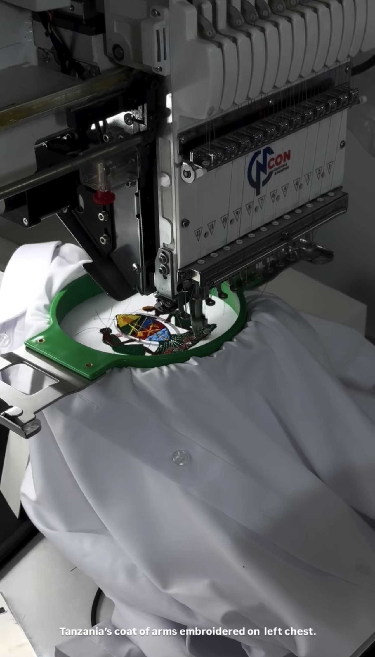 Complementing the shorts, the shirt featured Tanzania’s coat of arms prominently displayed across the front, grounding the outfit in national symbolism.
