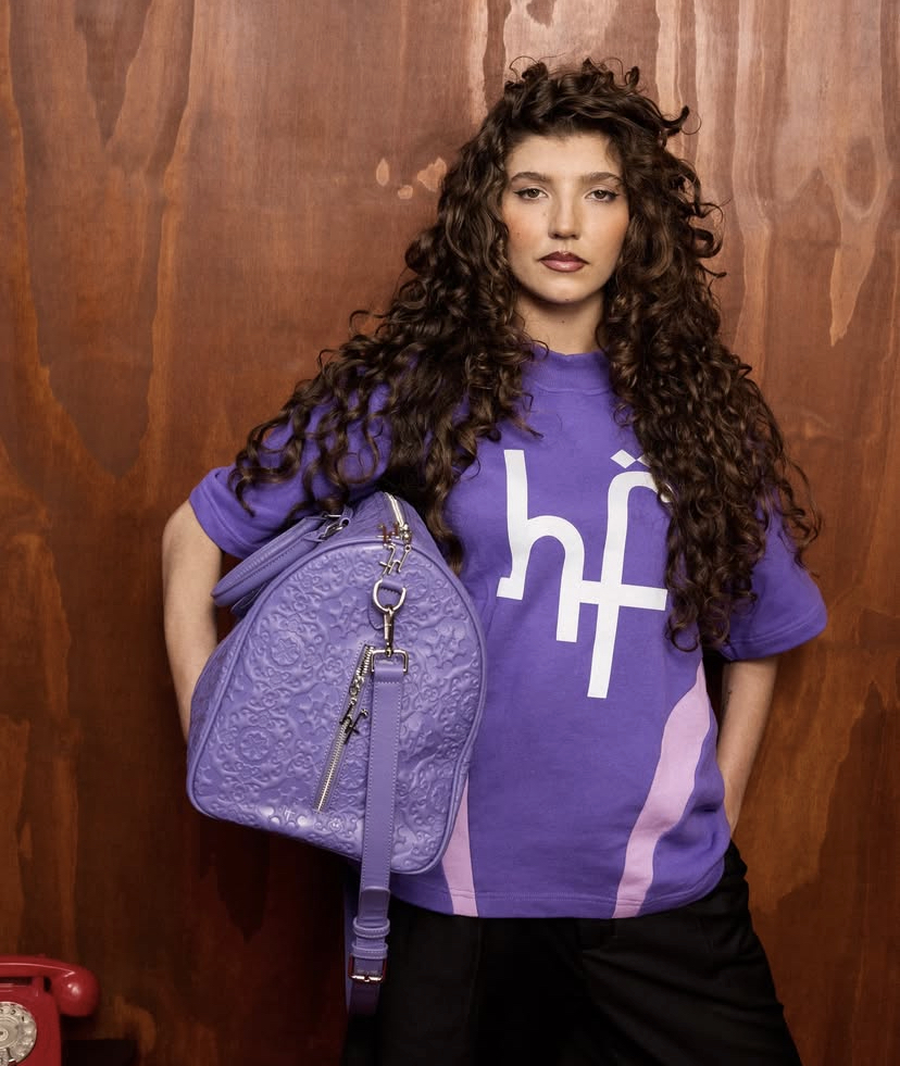 High Fashion by Jol also leans into material layering: alongside the tees, the campaign spotlights textured accessories, like a duffel with embossed design work and tonal stitching, that elevate the reflective motif into sculptural territory.