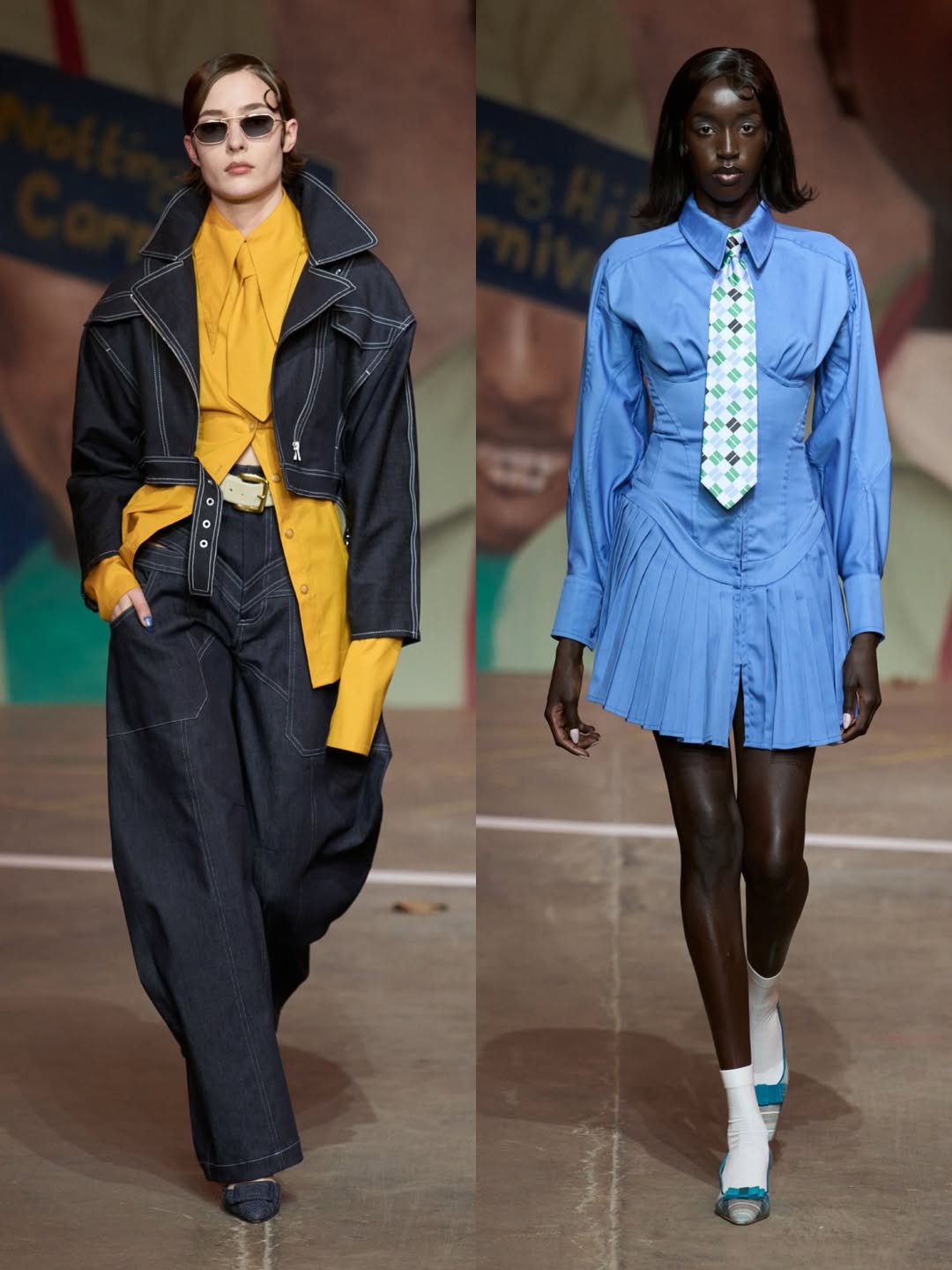 The staging of the show was itself a narrative experience. The runway recreated elements of Coker’s “block,” complete with street lamps, murals of Black Londoners, and a live soundtrack courtesy of Little Simz, whose performance animated the set and amplified the collection’s storytelling energy.