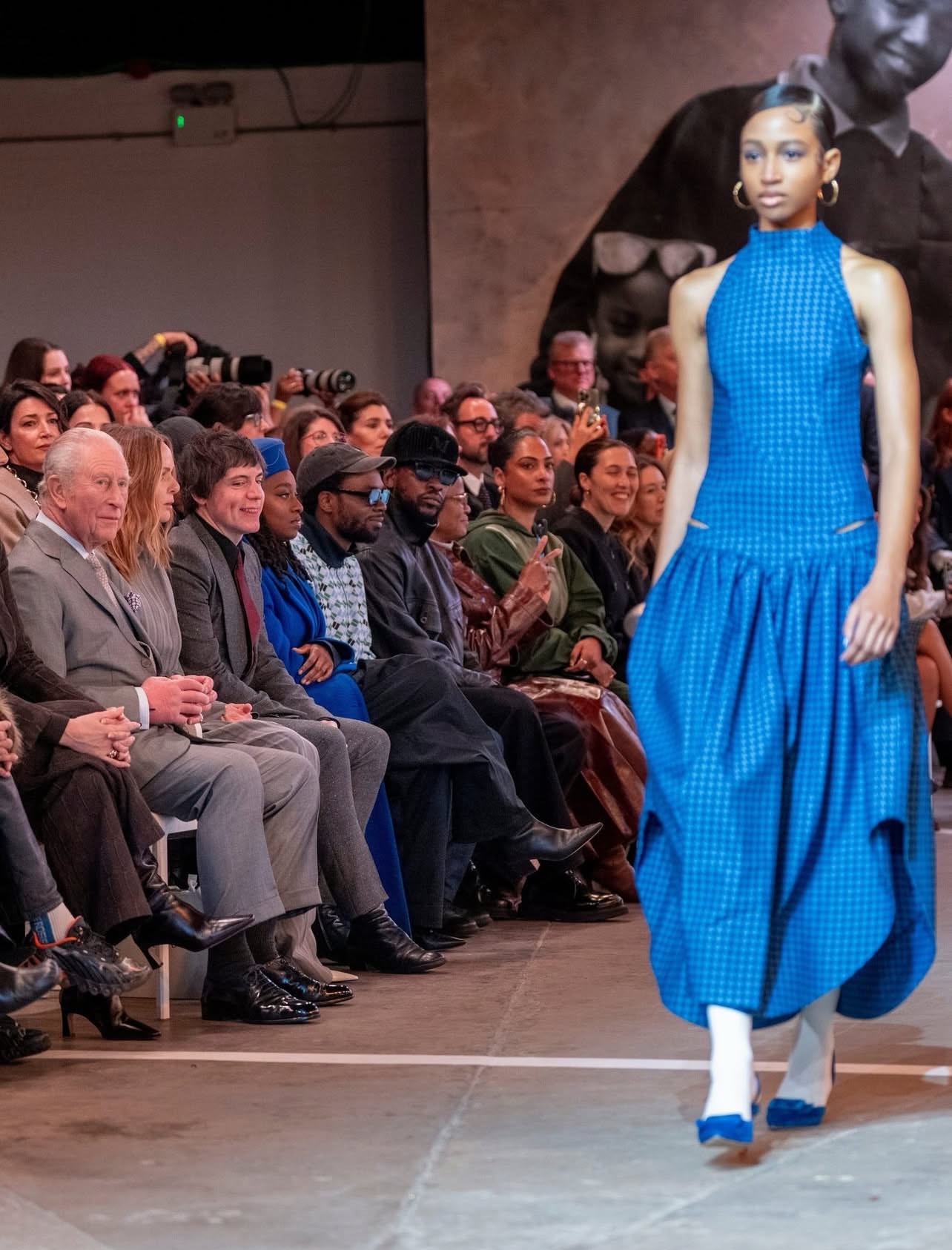 The King watched the show alongside design figures including Stella McCartney and British Fashion Council CEO Laura Weir, underscoring the broader industry support behind emerging talent.