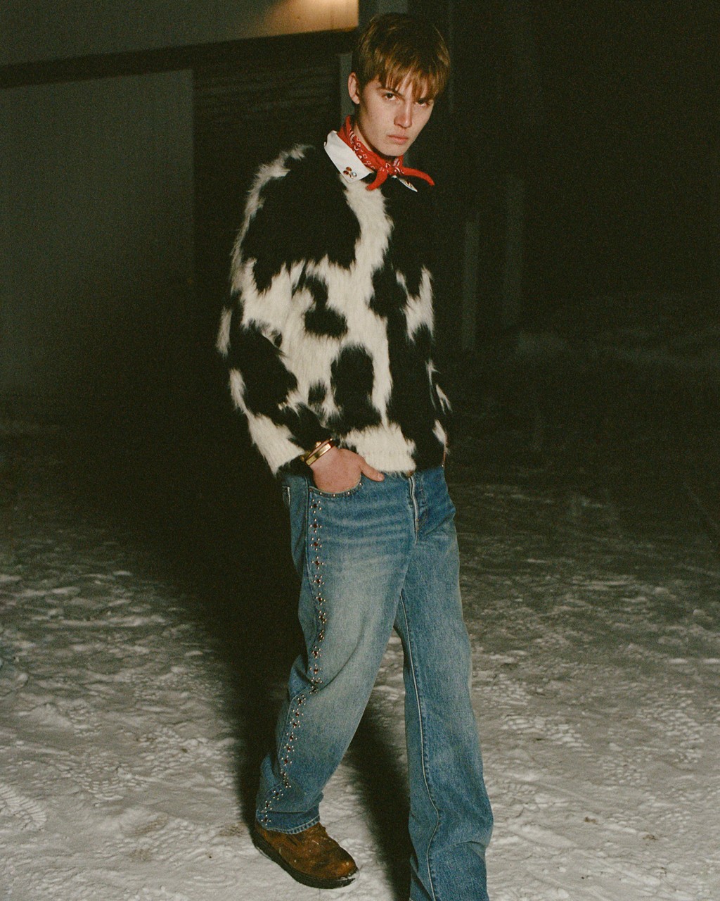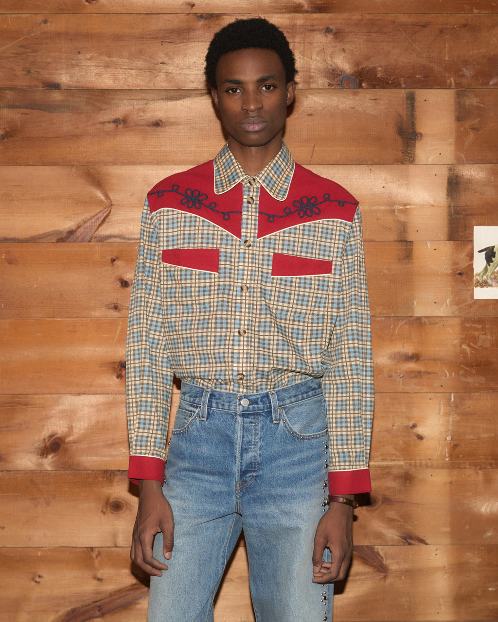 At the center of the project is the Bode Barrel Racer Jean, a straight-leg silhouette offered in two washes. The lighter wash channels early 1950s rodeo-era denim, decorated with silver studs and red gem embellishments, while the darker version features copper studs running down the side seams. Both styles are constructed from 14-ounce preshrunk selvedge denim, reinforcing the heritage craftsmanship both labels are known for.