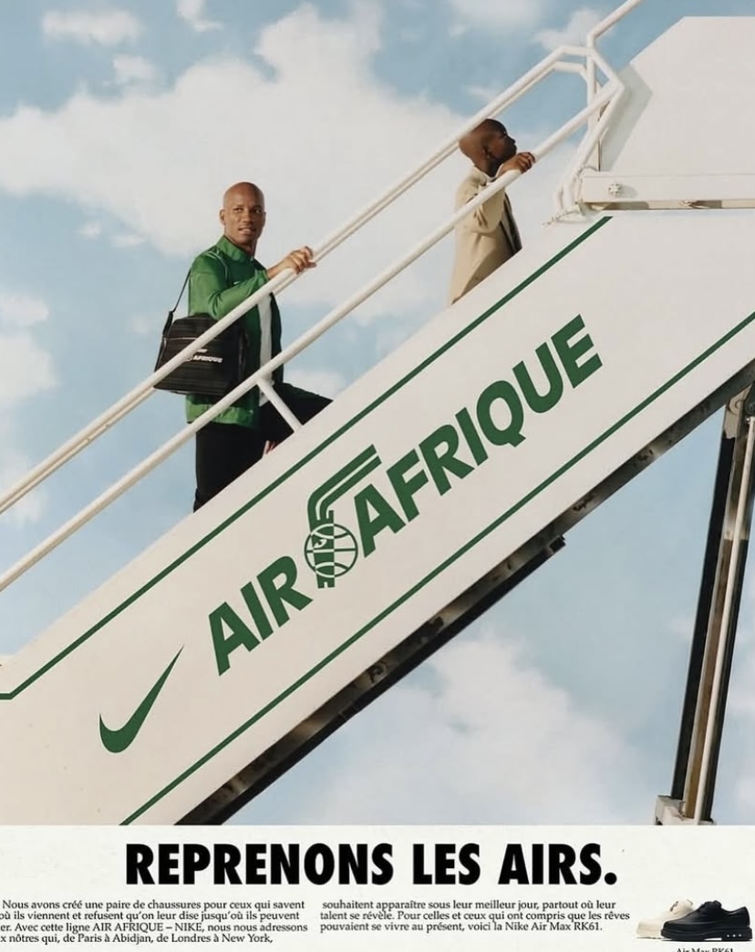 The storytelling behind the drop leans just as heavy as the design. Air Afrique, revived as a collective, views “Air” as a symbol of connection, elevation, and diaspora. Nike and the collective reflect on how the original airline once connected West Africa to the world; now, the RK61 aims to carry that legacy forward in cultural form. In its campaign, prominent cross-generational African diaspora figures, like Didier Drogba and Malian artist Oumou Sangaré, anchor the narrative in lived experience and inspiring presence.
