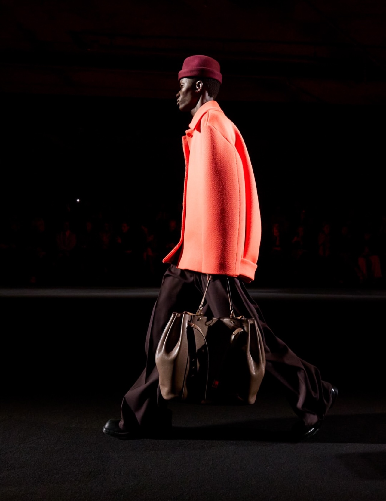 For FW26, Piccioli explored volume in a way that felt both architectural and emotional. Oversized coats, elongated tailoring, and sculptural shapes dominated the runway, giving each look a strong physical presence while maintaining the precision expected from the house.