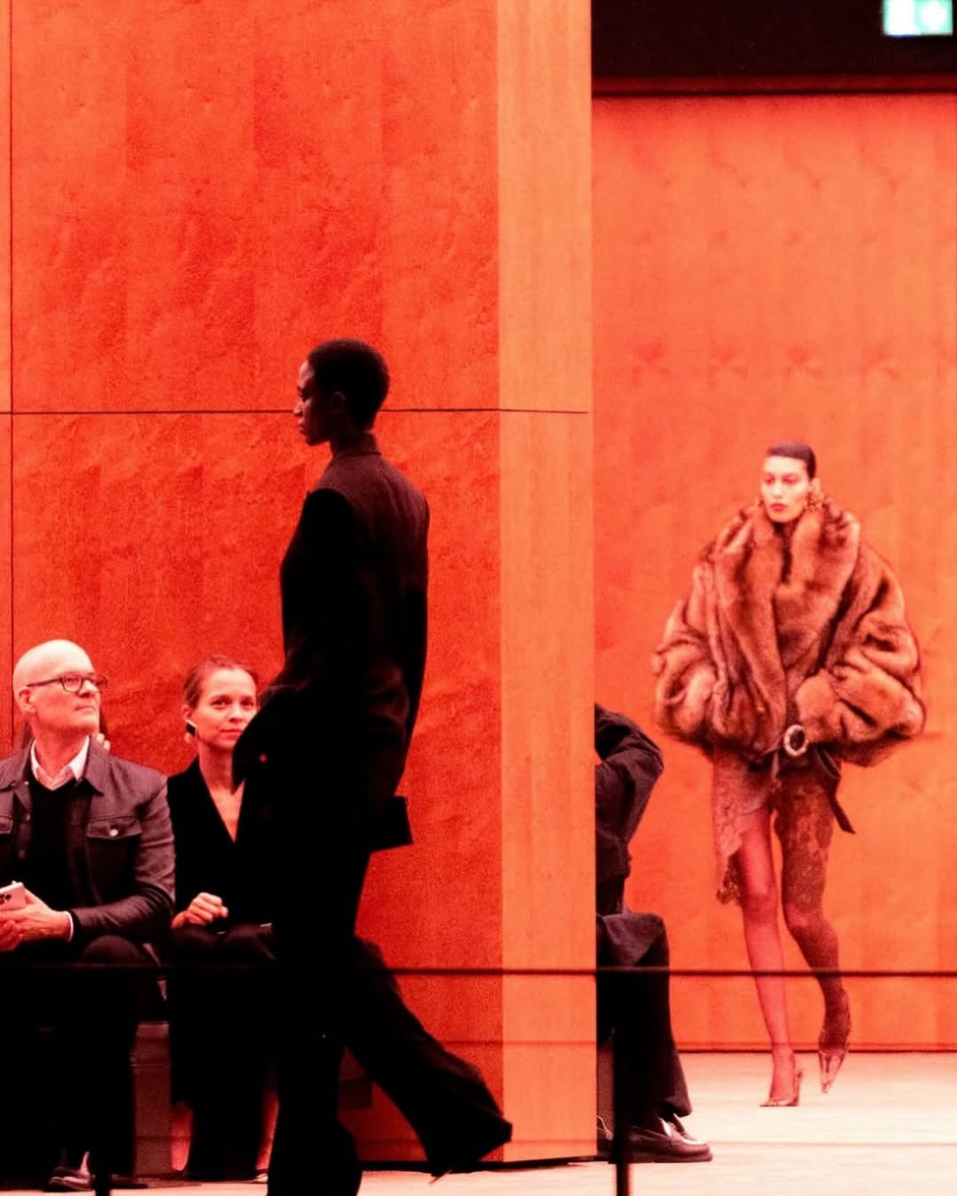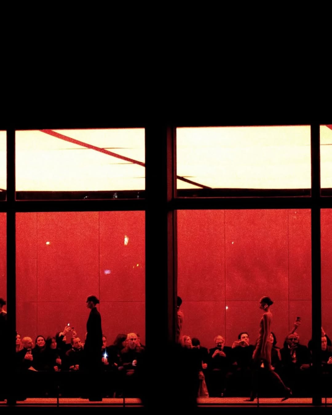 The result was a set of images that feel raw and honest. Instead of the polished runway perspective, Bellini captured the atmosphere around the show — silhouettes, movement, and glimpses of the collection through the barriers.