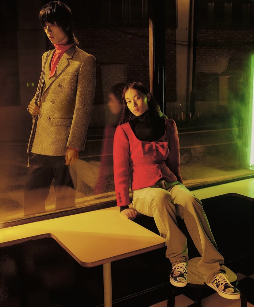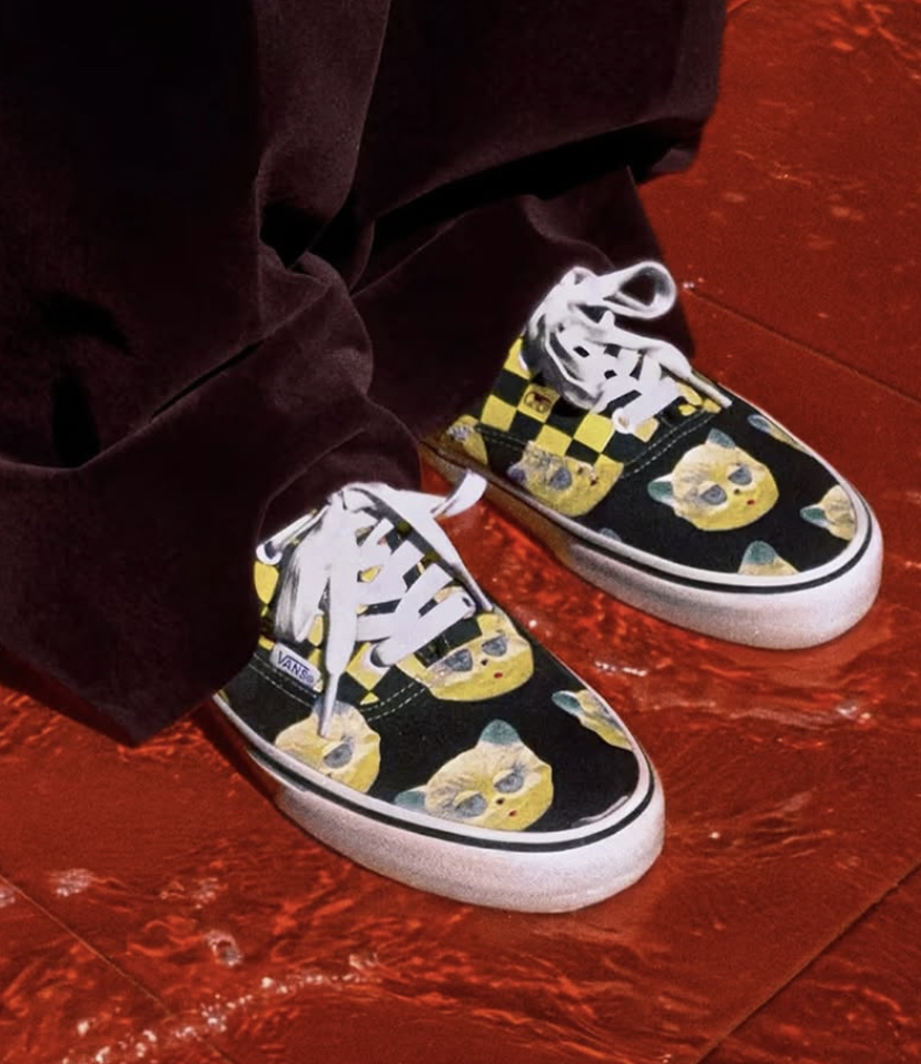 What lifts the campaign beyond just stylish visuals is how it plays with dualities. The checkerboard motifs native to Vans merge with Valentino’s red “V” branding. Texture and mood go from solid (tiled walls, structured bags) to fluid (water, reflections). It’s a metaphor for release and rebirth, letting streetwear codes meet couture glamour in a space that’s part performance, part dream. The “Le Chat de la Maison” piece stands out, exclusive to Valentino and select flagships, adding a whimsical flourish to the mix.